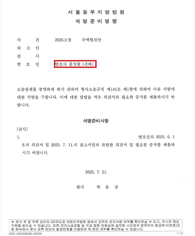 이에 변론 종결 후에도 저희는 포기하지않고 참고서면을 제출하였고, 주택법 위반의 정식재판사건에서는 이례적으로 '변론재개결정' 및 검사에 대한 '석명요구'까지 있게 되었습니다.