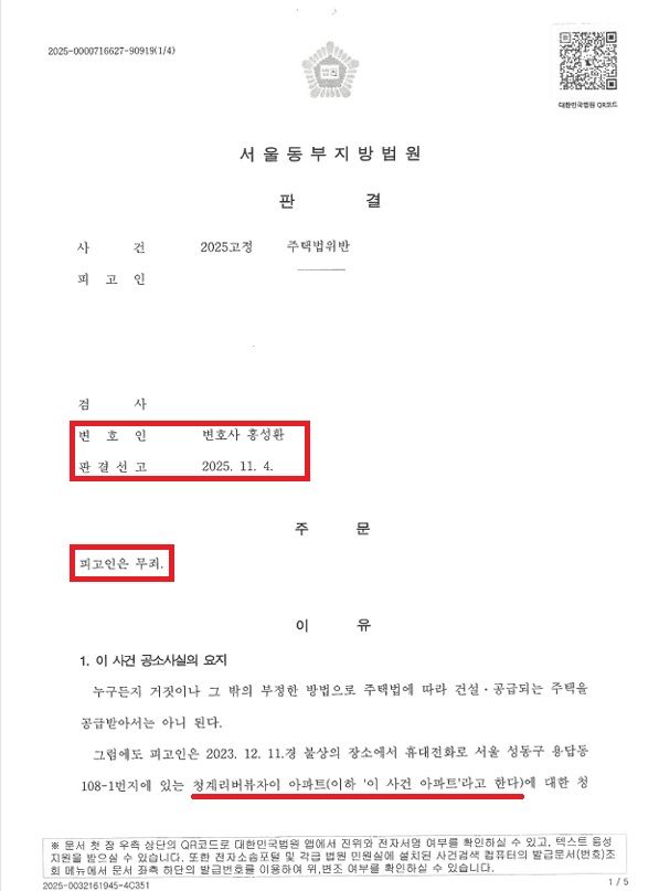 청계리버뷰자이 : 정식재판청구를 통한 무죄 판결