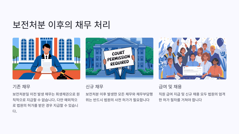 보전처분 결정 이후 발생한 모든 채무 지급과 채무부담 행위는 법원 허가를 받아야 하며, 이미 발생한 채무도 원칙적으로 법원 허가 없이 지급할 수 없다.