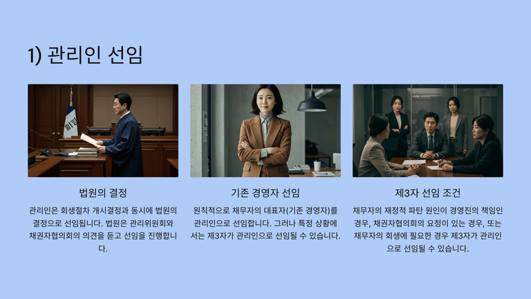 기업회생절차 중 "관리인의 선임"에 대한 안내입니다.