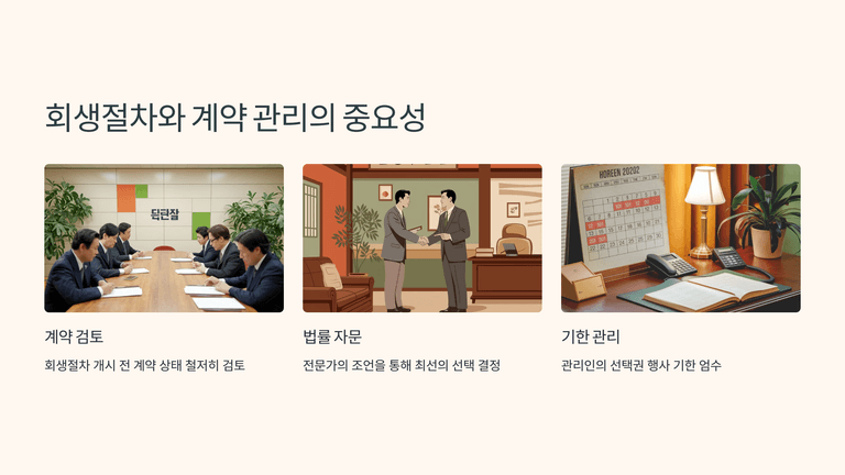 예컨대 도급계약에서 관리인이 이행을 선택하면 채권은 공익채권, 해제 시 회생채권으로 취급된다. 다만 주택·상가 임대차 보호법의 대항요건을 갖춘 임대차 계약은 관리인이 해제·해지권을 행사할 수 없고, 단체협약에도 쌍무계약 규정이 적용되지 않는다.