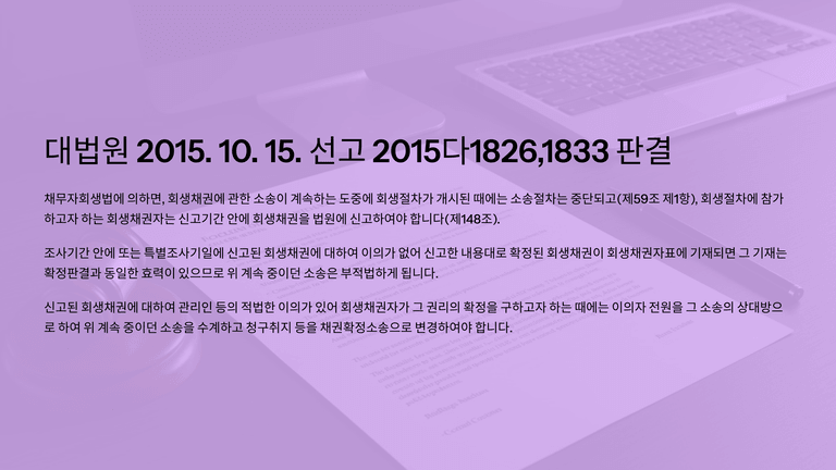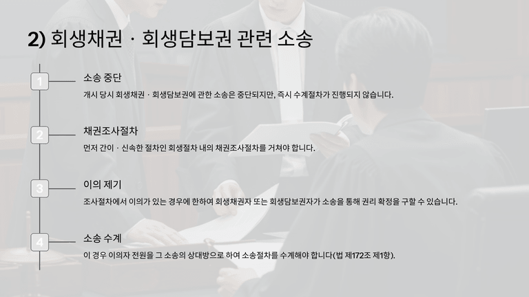 기업회생절차 중 "개시결정의 효력 - 소송"에 대한 안내입니다.