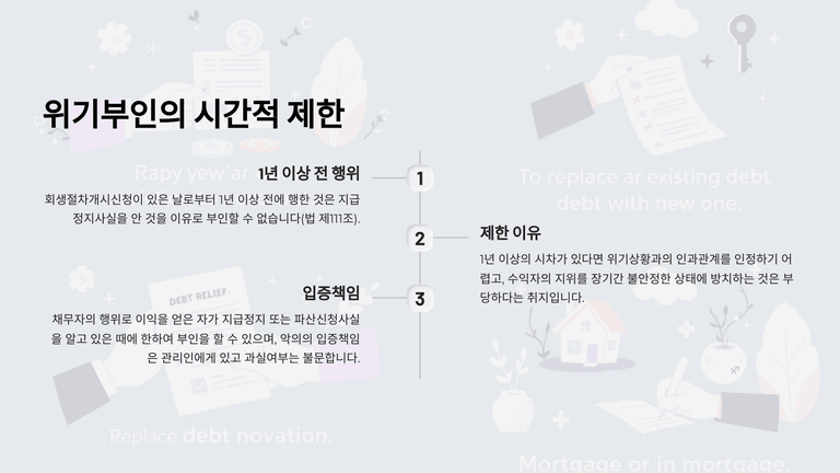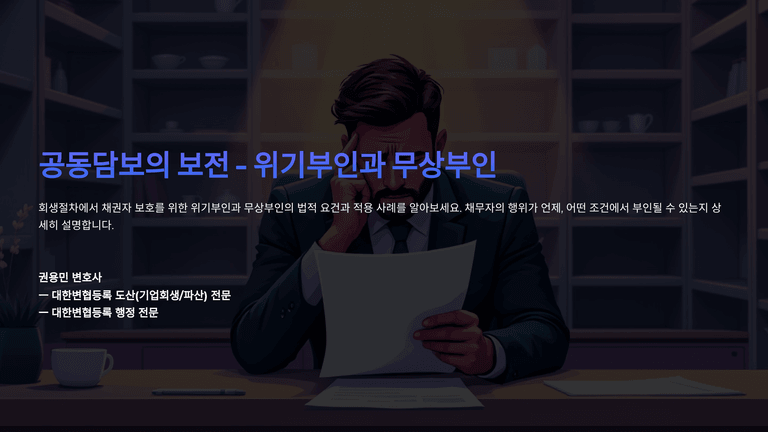 기업회생절차 중 "공동담보의 보전 - 위기부인과 무상부인"에 대한 안내입니다.