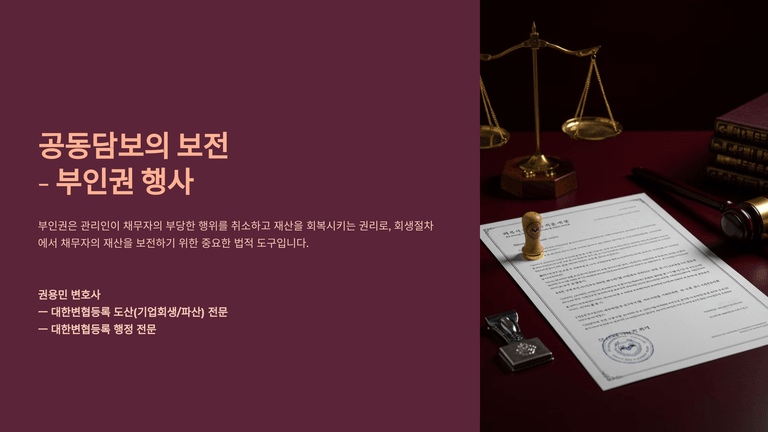 기업회생절차 중 "공동담보의 보전 - 부인권 행사"에 대한 안내입니다.