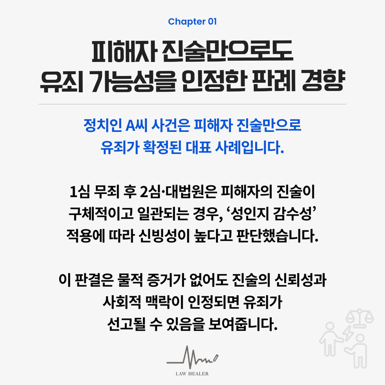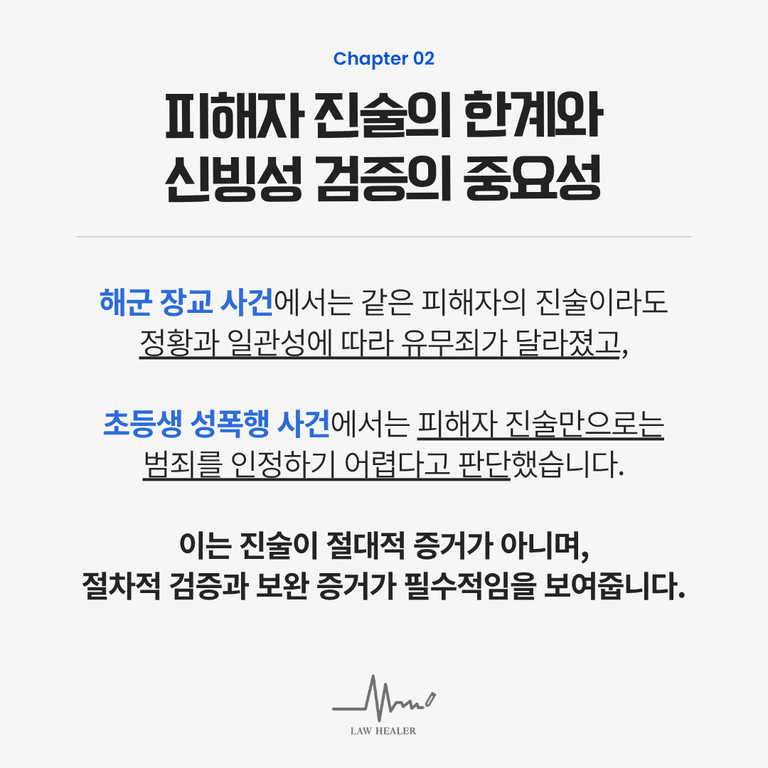 이는 피해자 진술이 '절대적 증거'가 아니며, 충분히 다툴 수 있는 영역임을 보여줍니다.