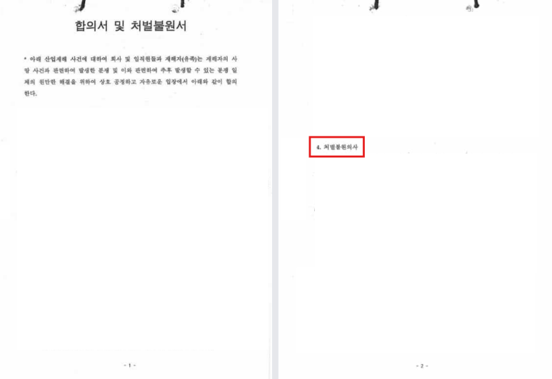 처분/결과 - [유족과의 합의 및 처벌불원 확인]