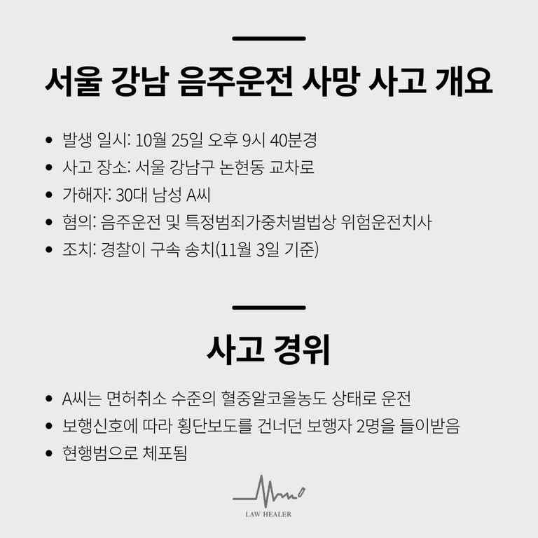 최근 서울 강남 도심에서 또 한 번의 비극적인 음주운전 사고가 발생했습니다. 만취 상태로 운전하던 30대 남성이 보행신호를 기다리던 시민들을 들이받아,
