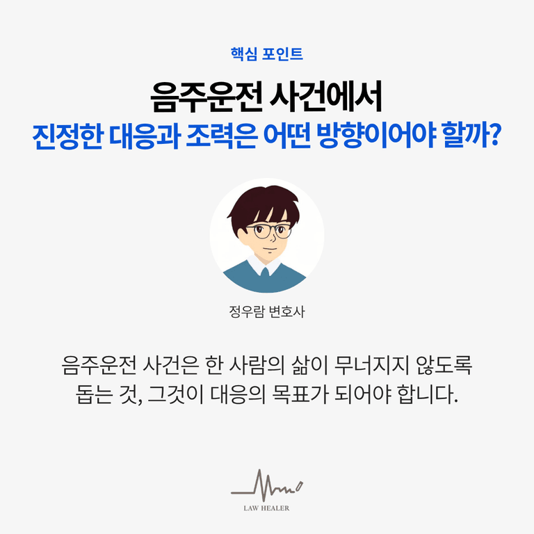 음주운전 사건의 대응에서 중요한것은 '형량'이 아니라, 모두(피해자, 피의자)의 삶이 걸린 문제라는 점입니다.