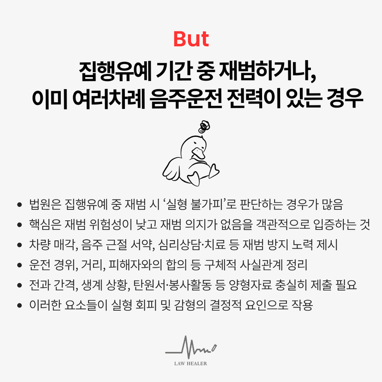 -이를 입증하기 위해서는 차량 매각, 음주 근절 서약서, 심리상담 및 약물치료 이력 등 실질적인 재범 방지 노력을 제시해야 합니다.