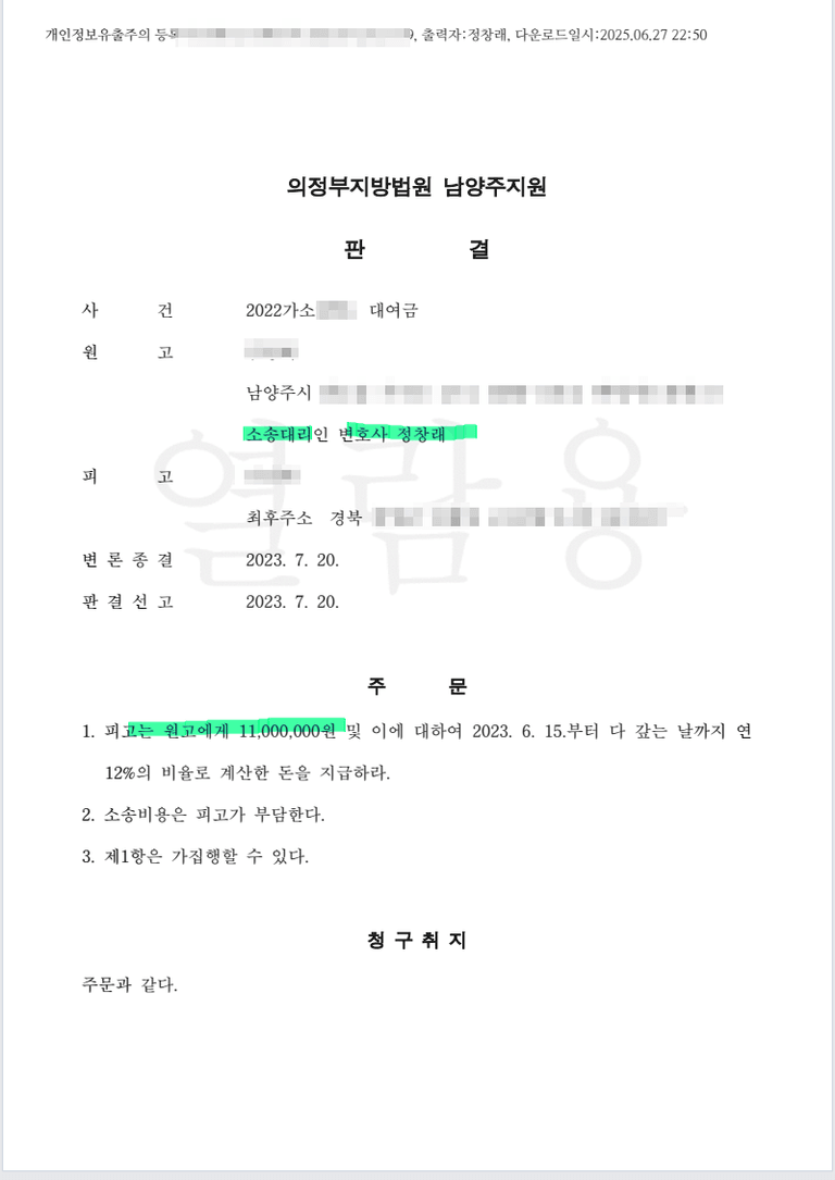 속아서 돈을 빌려주어서 대여금 소송 제기하여 전부 승소한 사례