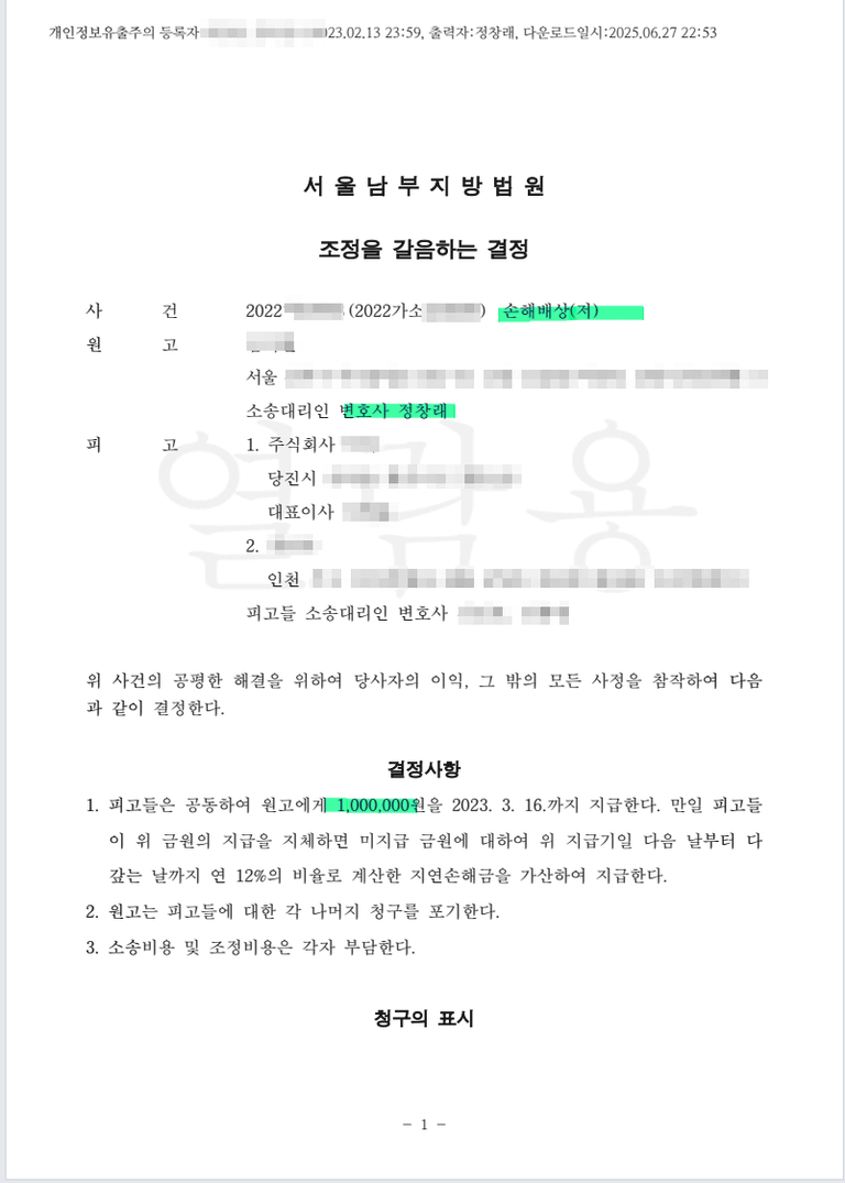 저작권침해 조정사례