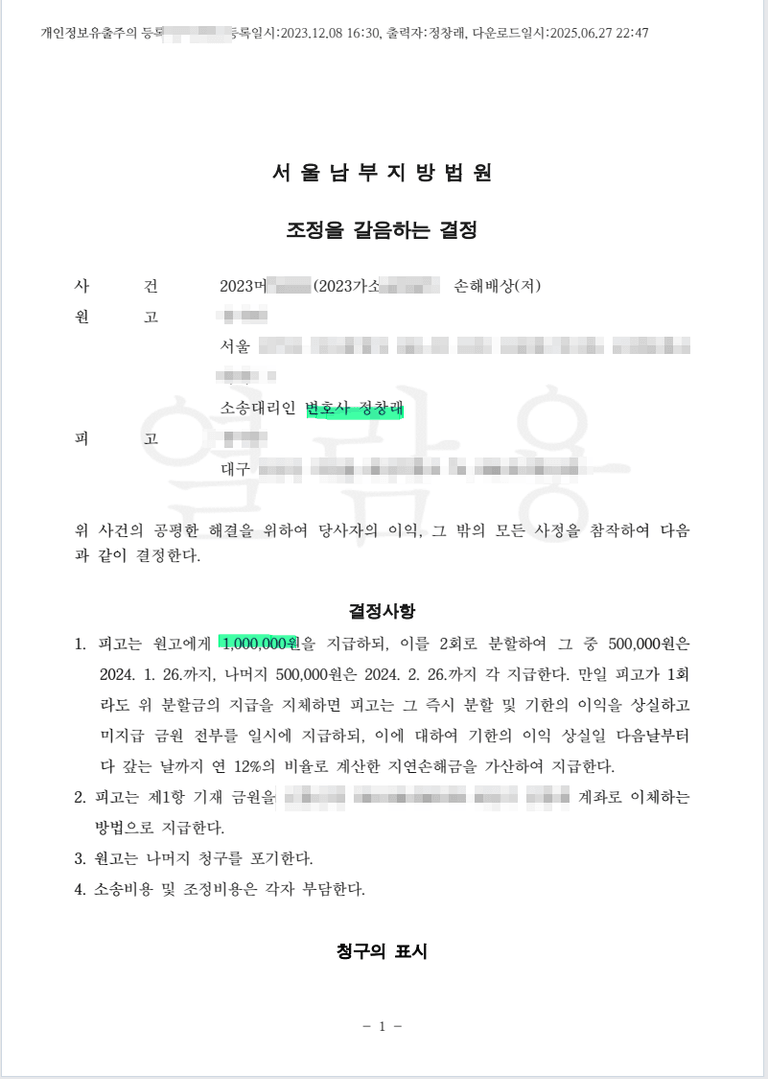 100만원 합의한 사례