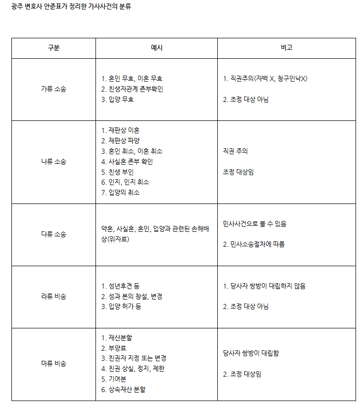 오늘은 가사사건의 종류에 대해서 알아보겠습니다.