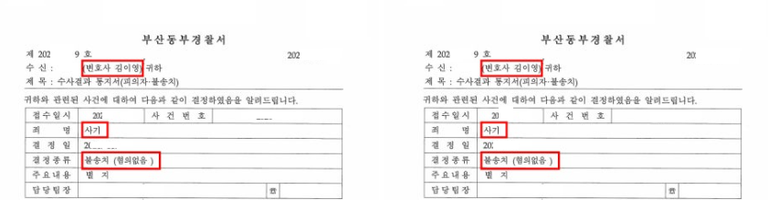 그 결과, 의뢰인들은 각자 사기 혐의없음(불송치결정)을 받을 수 있었습니다.