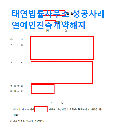 오늘은 태연법률사무소에서 진행한 연예인 전속계약 해지 성공 사례를 소개드리고자 합니다.