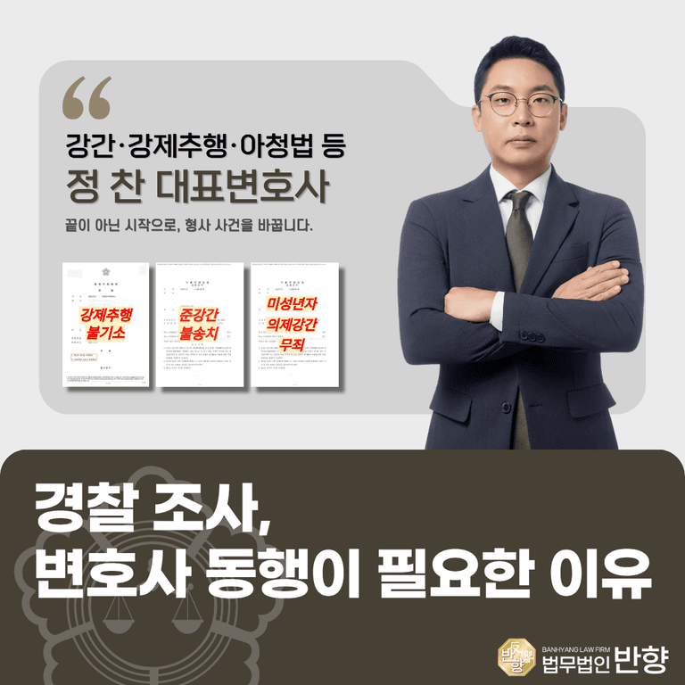 결국 의뢰인은 강제추행치상 혐의로 수사를 받게 되었고, 사건이 커지기 전에 대응이 필요하다고 판단해 법무법인 반향의 정찬 변호사에게 상담을 요청하셨습니다.