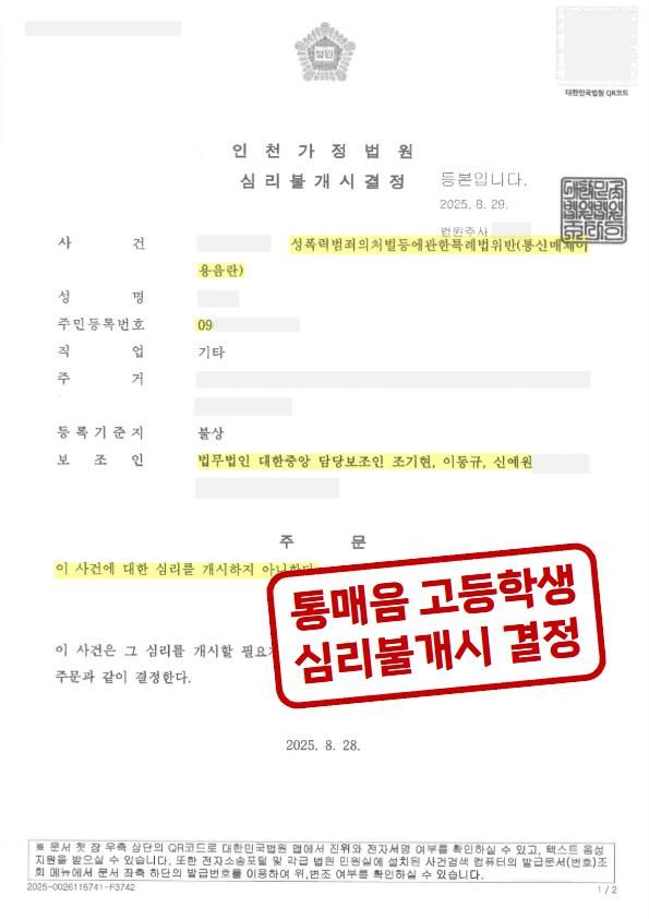 그 결과 재판부는 이동규 변호사의 주장을 모두 인정하고, 심리불개시 결정을 내렸습니다. 이에 A군은 일상과 학업에 아무런 지장없이 다시 돌아갈 수 있었습니다.