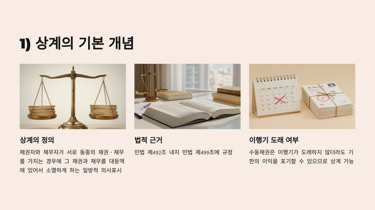 상계는 채권자와 채무자가 서로에 대해 가지는 동종 채권·채무를 일방적 의사표시로 소멸시키는 제도이며, 회생절차에서는 채무자의 재산보전과 형평성 확보를 위해 엄격한 제한이 따른다.