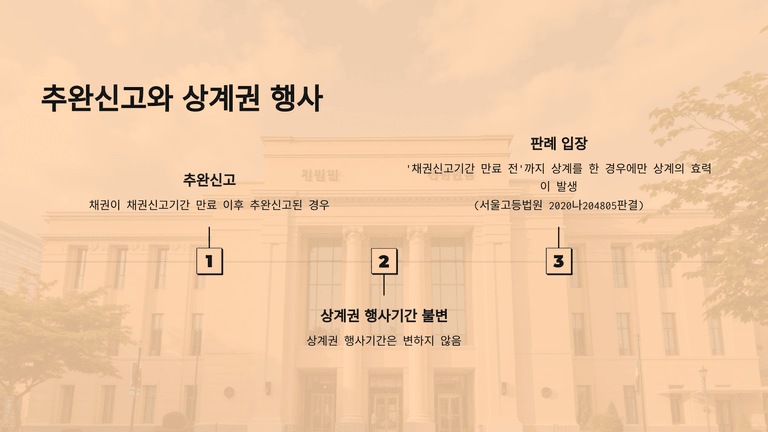따라서 회생절차에서 상계를 원하는 채권자는 시기·형태·조건을 엄격히 따져 상계를 행사해야 한다.