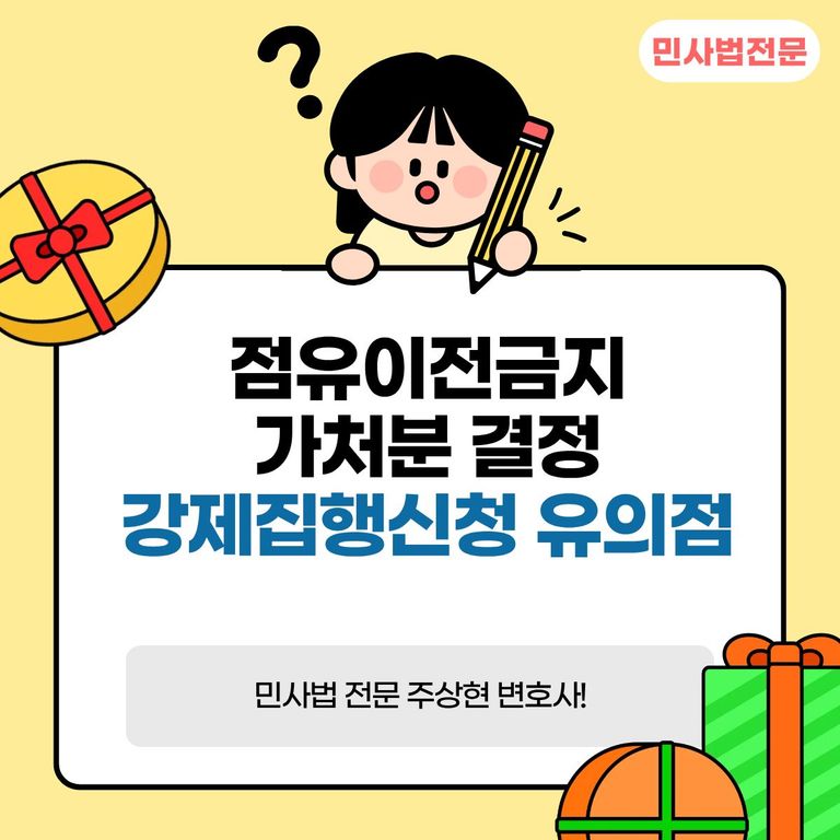 이상 점유이전금지 가처분 결정 이후 후속절차(강제집행신청)에 관해 알아보았습니다. 점유이전금지 가처분 신청 및 강제집행 신청은 난도가 높지는 않으나 여러모로 번거로운 절차가 포함되어 있습니다. 변호사를 선임하시면 정확하고 신속하게 진행할 수 있으니 참고하시기 바랍니다.
