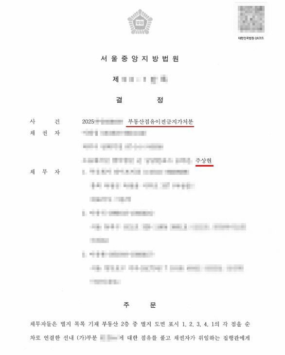 1. 점유이전금지 가처분 결정문 송달 및 출력