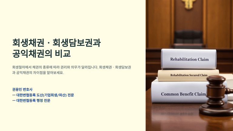 기업회생절차 중 "회생채권ㆍ회생담보권과 공익채권의 비교"에 대한 안내입니다.