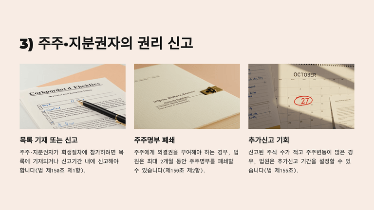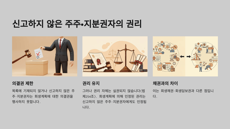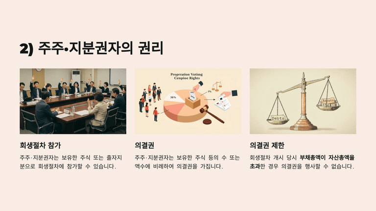 기업회생절차 중 "기타 이해관계인 - 주주 및 지분권자"에 대한 안내입니다.