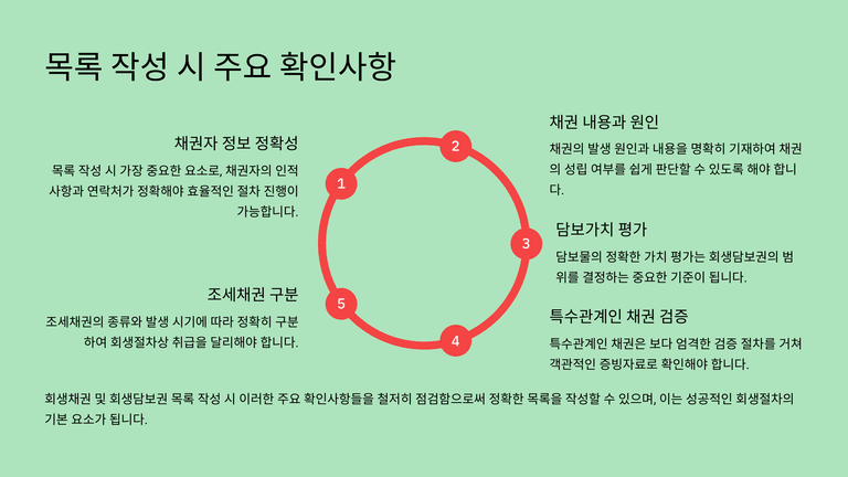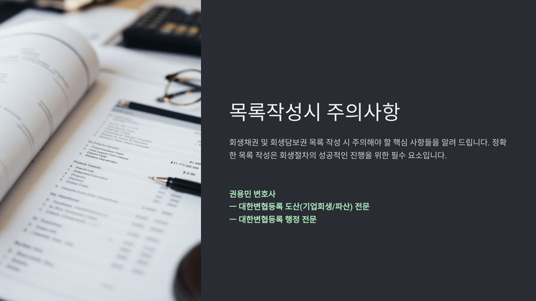 기업회생절차 중 "목록작성시 주의사항"에 대한 안내입니다.