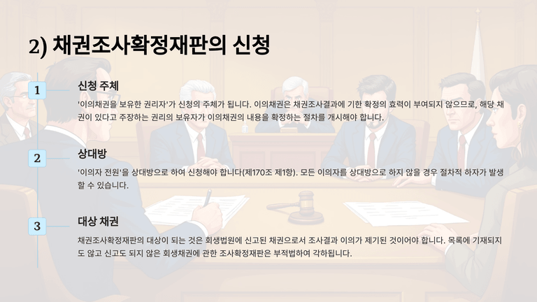 기업회생절차 중 "회생채권 등의 조사확정재판"에 대한 안내입니다.