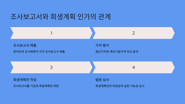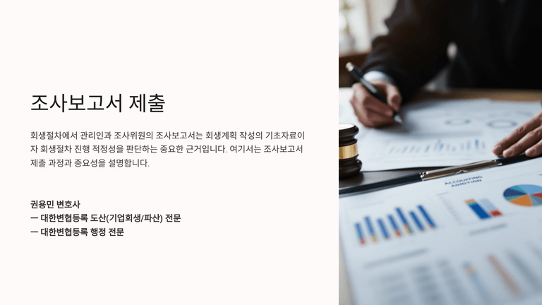 기업회생절차 중 "조사보고서 제출"에 대한 안내입니다.