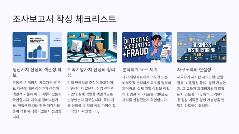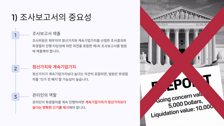기업회생절차 중 "조사보고서 작성시 주의사항②"에 대한 안내입니다.