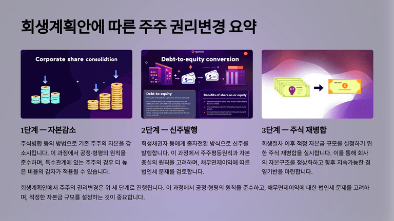 기업회생절차 중 "회생계획안 - 주주의 권리변경"에 대한 안내입니다.