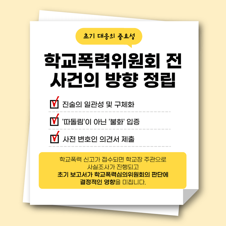 많은 부모님들이 이 초기 단계를 간과하고 학폭위에 가서야 변명을 시도하지만