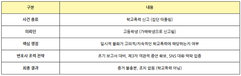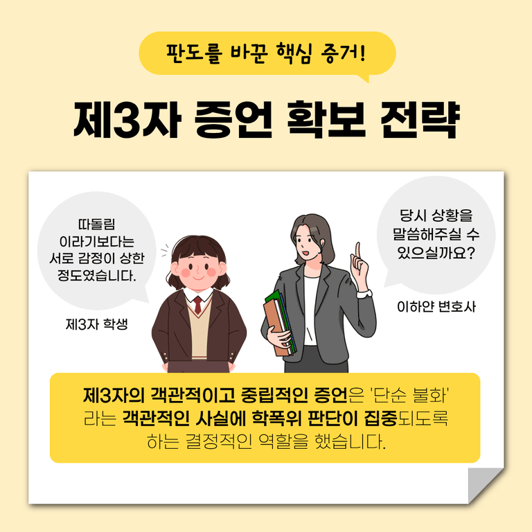 '단순 불화'라는 객관적인 사실에 학폭위의 판단이 집중되도록 하는 결정적인 역할을 했습니다.