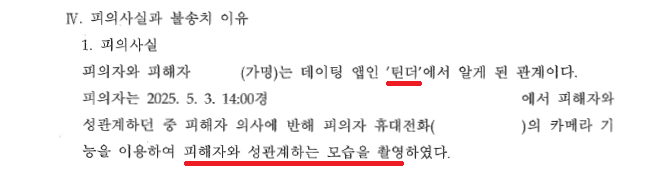 A씨는 데이팅 앱 '틴더'에서 처음 알게 된 여성 B씨와 원나잇을 하다가 촬영하겠다고 말하고는 답변도 듣지 않은 채 동영상 촬영하였습니다.