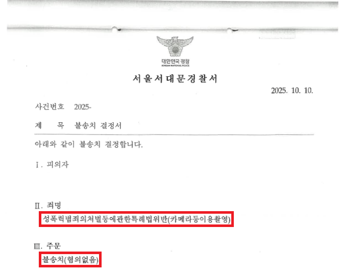 이러한 저의 조력을 바탕으로 A씨는 일방적으로 촬영하겠다고 말만 하고는 답변도 듣지 않은 채 동영상 촬영하였음에도 불구하고 '불송치(혐의없음)' 결정을 받음으로써 억울하게 성범죄자가 될 위기에서 벗어날 수 있었습니다.