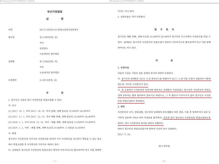 [이혼이 조정으로 종결되면서 면접교섭에 관한 협의가 되지 않아 사건본인에 대한 면접교섭이 이루어지지 않자 면접교섭허가심판을 제기하여 인용받은 사례 : 부산가정법원 2017. 9. 26.자 2017느단200130 면접교섭허가심판청구]