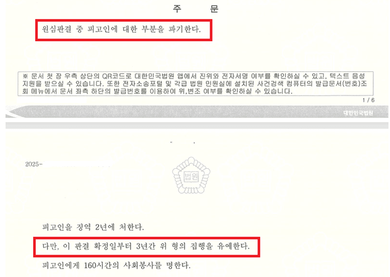 결국 항소심 재판부는 원심 판결을 파기하고 의뢰인에게 징역 2년, 집행유예 3년, 사회봉사를 명하였고 의뢰인은 구속의 위험에서 벗어날 수 있었습니다.