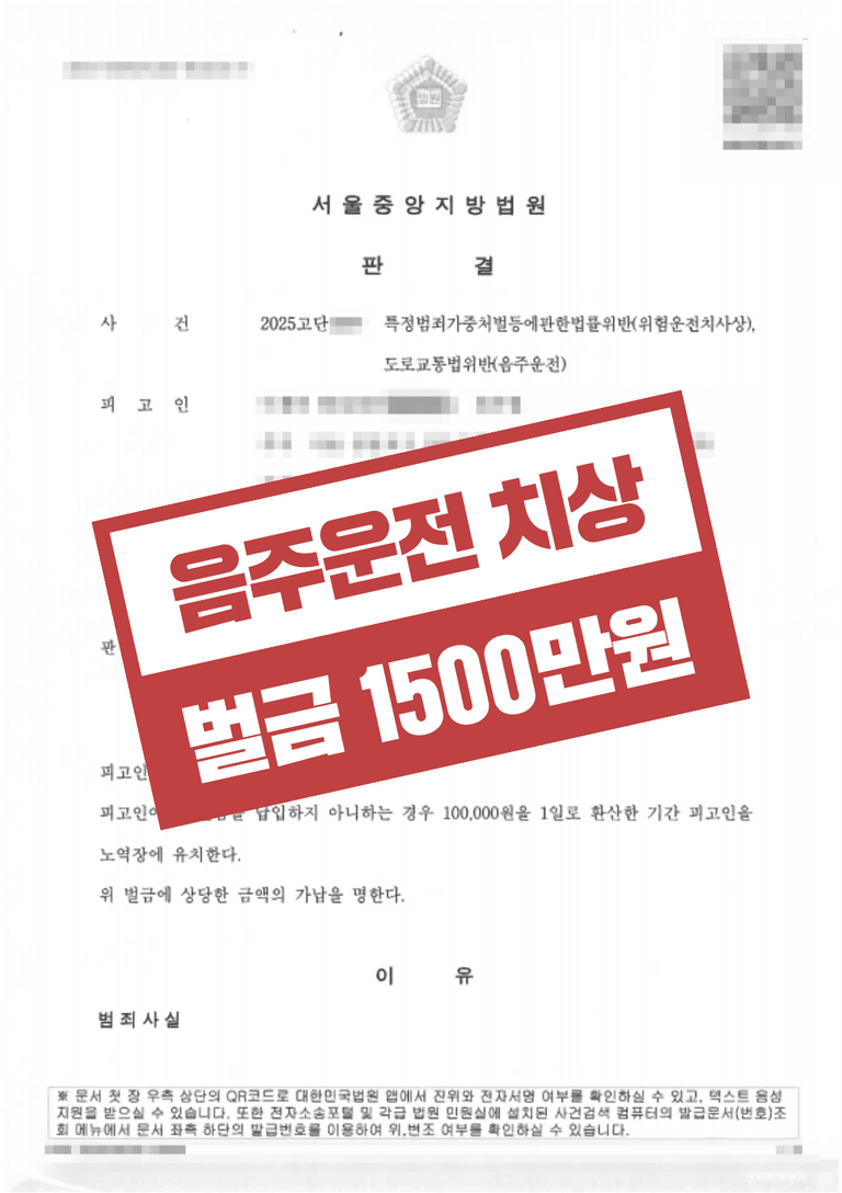 재판부는 “벌금형만으로도 충분한 교정 효과가 있다”고 판단하며 벌금 1,500만 원형을 선고했습니다.