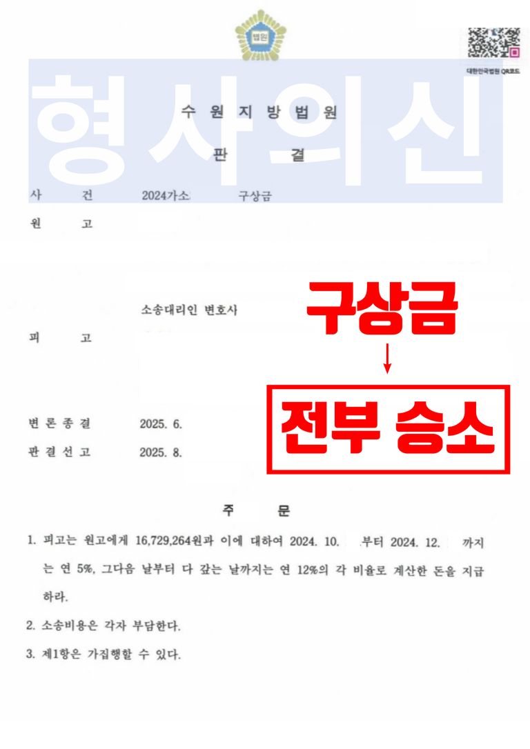 수원지방법원은 법률사무소 유(唯)의 전문변호사의 주장을 받아들여 원고 전부 승소 판결을 선고하였습니다.