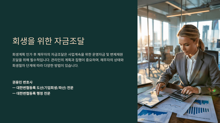 기업회생절차 중 "회생을 위한 자금조달"에 대한 안내입니다.