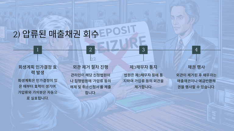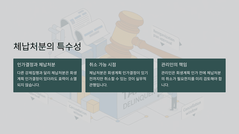 회생계획 인가 후 채무자의 자금조달은 사업의 계속성과 회생계획의 이행을 위해 필수적이다. 자금조달은 관리인이 계획을 수립하고 집행하며, 주된 방법은 매출을 통한 영업이익 확보이다. 그러나 매출만으로 부족할 경우에는 압류된 채권 회수, 신규 차입, 비영업용 자산 매각, 신주·사채 발행 등을 통해 보완한다. 특히 가압류나 압류로 회수하지 못한 매출채권과 예금반환채권은 인가결정 이후 관리인이 해제·취소 신청을 통해 회수할 수 있다. 다만 체납처분은 예외적으로 인가 후에도 효력이 유지되므로 사전에 취소 여부를 검토해야 한다.