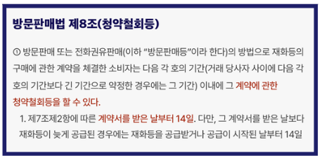 계약 체결 후 14일이 지났으므로 철회할 수 없다