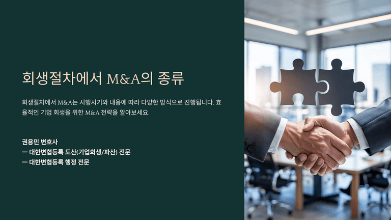 기업회생절차 중 "회생절차에서 M&A의 종류"에 대한 안내입니다.
