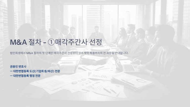 기업회생절차 중 "M&A 절차 - ①매각주간사 선정"에 대한 안내입니다.