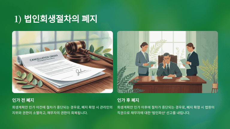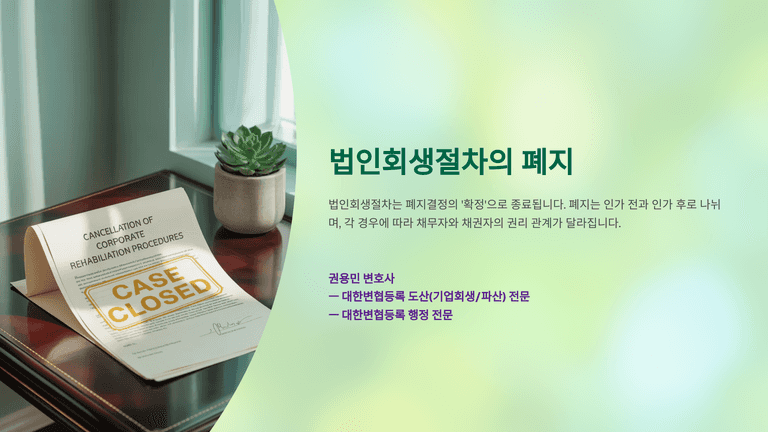기업회생절차 중 "법인회생절차의 폐지"에 대한 안내입니다.