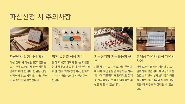 기업파산절차 중 "법인파산의 신청원인"에 대한 안내입니다.