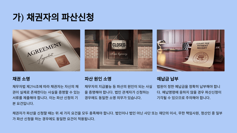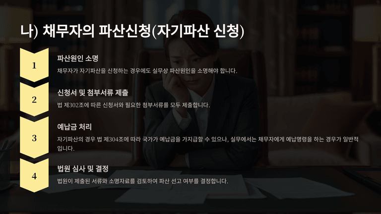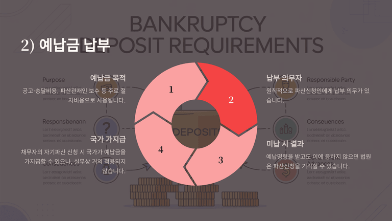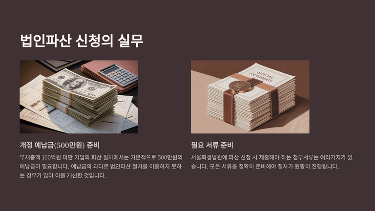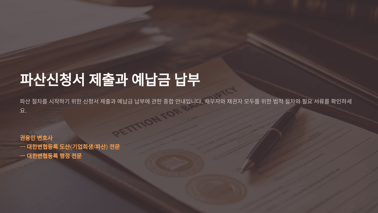 기업파산절차 중 "파산신청서 제출과 예납금 납부"에 대한 안내입니다.