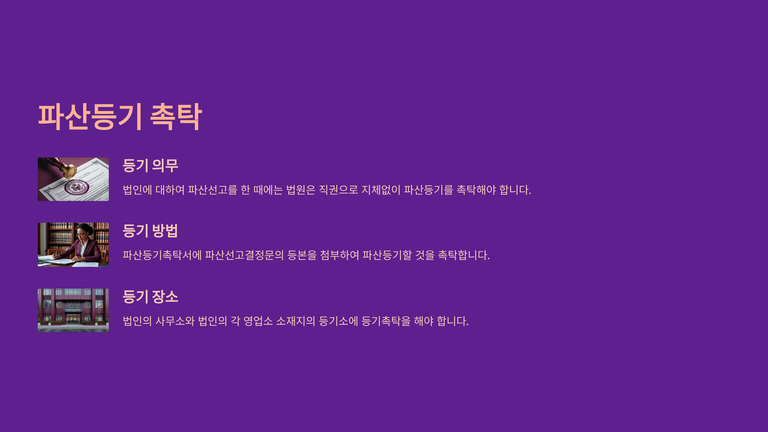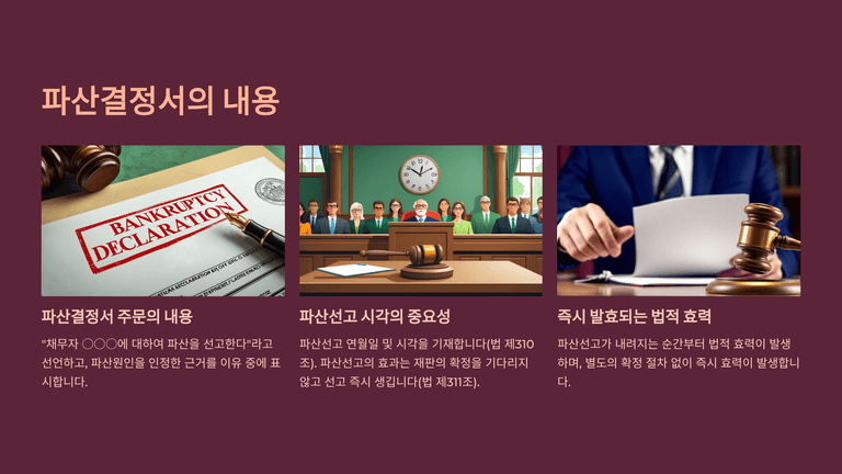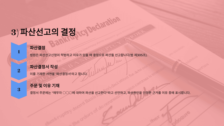 기업파산절차 중 "법원의 파산선고"에 대한 안내입니다.