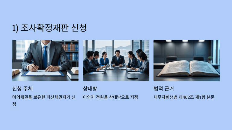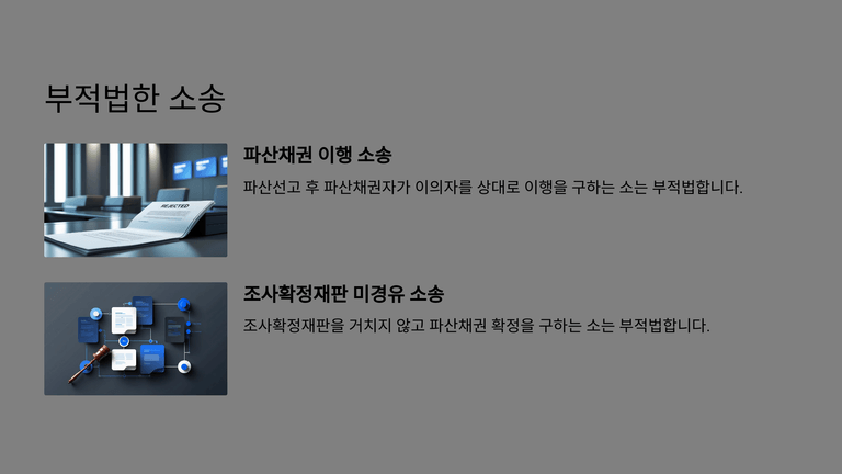 채무자회생법은 소송을 통한 채권확정 절차가 과도하게 지연되는 문제를 개선하기 위해, 이의가 제기된 채권의 존부나 범위를 신속하게 판단하기 위한 조사확정재판 절차를 마련하고 있다. 파산채권자는 소송 전에 반드시 이 절차를 거쳐야 하며, 이에 불복하는 경우에만 이의의 소를 제기할 수 있다. 따라서 파산선고 후 채권자가 조사확정재판 없이 곧바로 파산채권의 확정을 구하는 소송을 제기하는 것은 부적법하다.